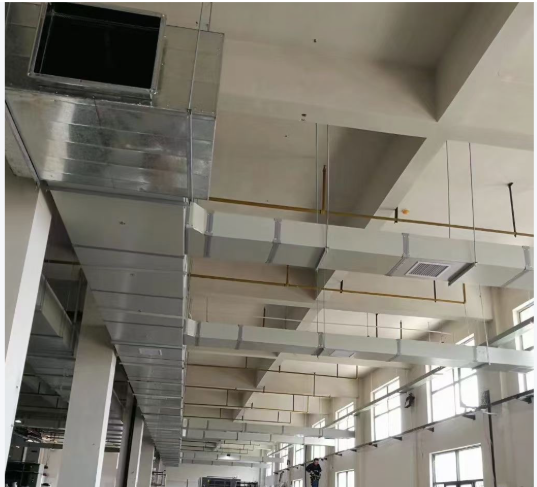 High installation location: Elevated ducts are generally installed at the top of buildings, above ceilings, or on steel structures at high elevations to provide ventilation or air conditioning coverage for specific areas.